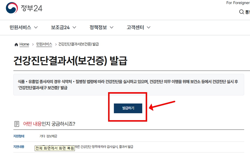 검사가 완료되고 일정 시간이 지나면, 굳이 보건소를 재방문하지 않아도 온라인으로 보건증 출력이 가능합니다.